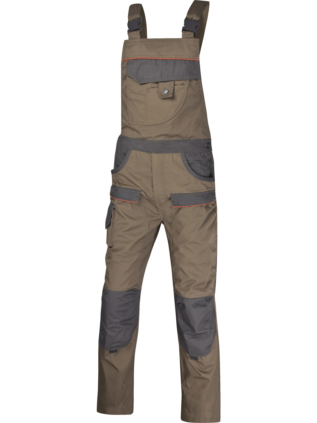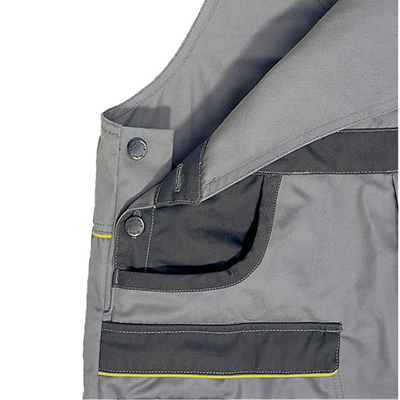 Jardineira MACH2 CORPORATE. Bolso para joelheiras; suspensórios elásticos ajustáveis; porta cartão; reforço atrás. 10 bolsos. Largo bolso central com fecho de correr. Bolso para joelheiras. Cintura aperta por botões.