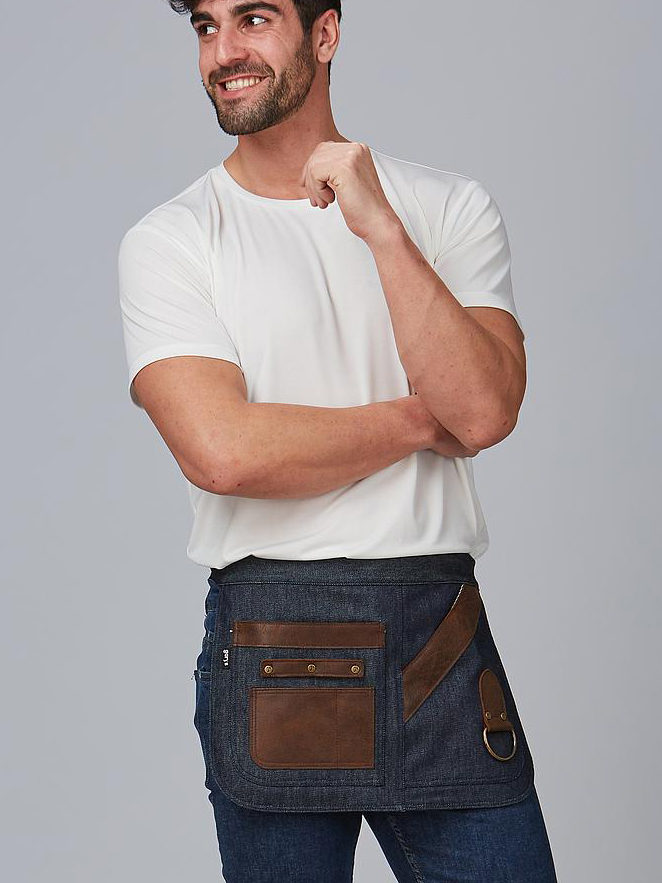 Avental curto em ganga e couro, uma obra-prima concebida para profissionais de salão e de beleza exigentes. Confeccionado em ganga grossa e com detalhes em pele genuína de alta qualidade, este avental proporciona-lhe resistência e um estilo duradouro, garantindo-lhe uma imagem profissional impecável em todos os momentos. A cinta é equipada com uma fivela ajustável e um gancho de pressão, permite que este avental se adapte perfeitamente ao seu corpo, dando prioridade ao seu conforto e estilo pessoal. Com vários bolsos de diferentes tamanhos estrategicamente colocados, terá todas as suas ferramentas e utensílios na ponta dos dedos, eliminando o desperdício de tempo à procura de tesouras, pentes ou outros utensílios essenciais. Os detalhes em pele de alta qualidade não só conferem uma elegância distinta, como também facilitam a limpeza e a manutenção, assegurando que este avental resistirá ao desgaste constante do uso quotidiano. Este avental com carácter é ideal para barbearias, cabeleireiros, salões de beleza, spas, lojas e vários outros estabelecimentos, acrescentando um toque de estilo ao seu uniforme de trabalho. Atreva-se a destacar-se com um avental que alia funcionalidade e elegância. -Sistema de fecho de fivela com mosquetão. -Sistema de fecho com fivela. -3 bolsos à frente. -Comprimento aproximado: 30 cm.