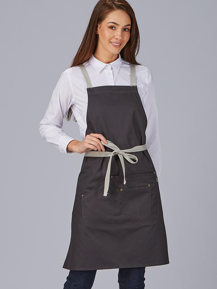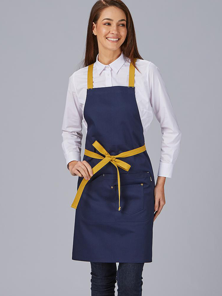 O Avental com Peito e Alças em Contraste é uma peça essencial para profissionais da hotelaria que valorizam design, resistência e máximo conforto durante a rotina de trabalho. Com um desenho moderno e sofisticado, apresenta alças ajustáveis em fita espinha de peixe numa cor contrastante, conferindo um toque distinto e profissional ao uniforme. Este modelo conjuga funcionalidade e estilo, adaptando-se facilmente a diferentes ambientes, como restaurantes, bares, cafés e hotéis. Alças ajustáveis em contraste: Permitem ajuste perfeito à altura e corpo de cada utilizador, proporcionando conforto durante longos períodos de uso. Três bolsas frontais: Ideais para guardar utensílios, blocos de notas, canetas e acessórios essenciais ao serviço. Passa-cintos decorativos: Acabamento na cor do cinto, acrescentando uniformidade e elegância à peça. Corte funcional: Comprimento de aproximadamente 88 cm, oferecendo proteção adequada sem restringir os movimentos. Cores modernas disponíveis: Azul marinho, cinzento escuro, verde caqui e camel, adaptando-se a diferentes estilos e identidade visual do estabelecimento. Durabilidade e resistência: Tecido robusto, próprio para lavagens frequentes e uso intensivo. Medidas generosas: 88 cm de comprimento x 74 cm de largura, proporcionando ampla cobertura.