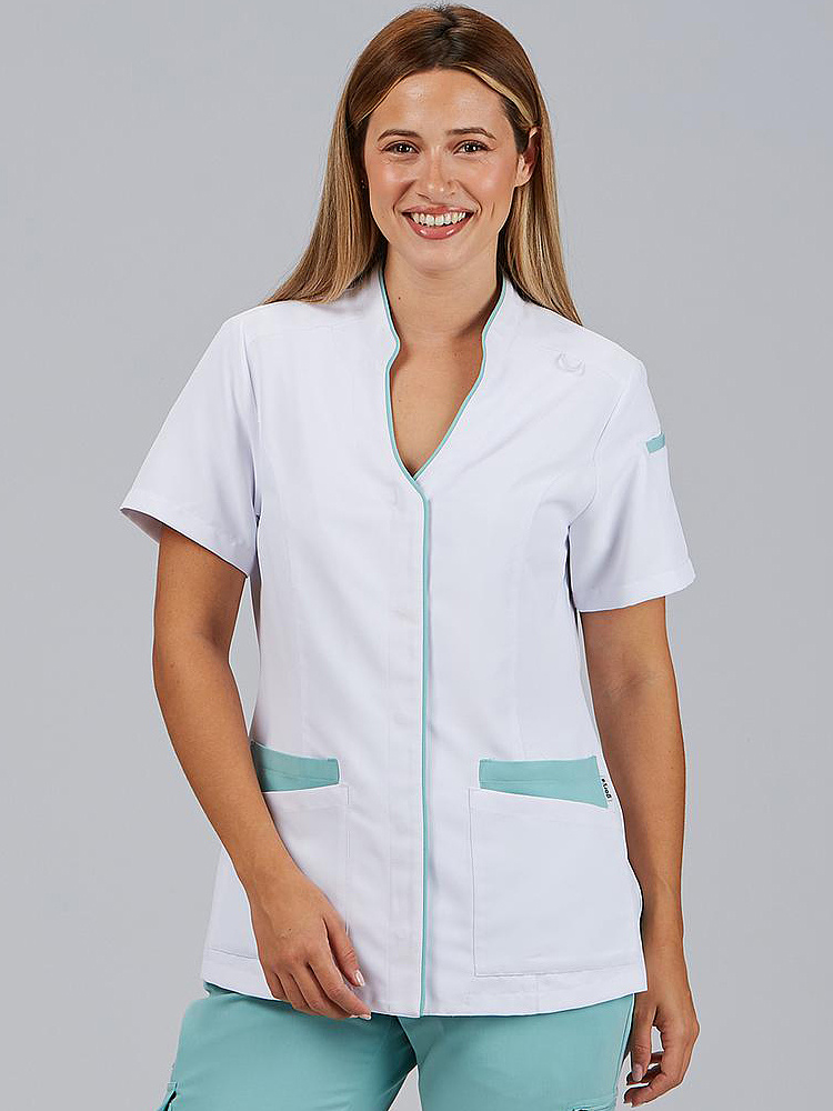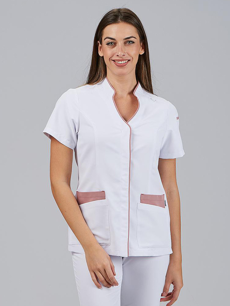 A tunica feminina YLENA de manga curta é a escolha perfeita para profissionais que procuram uma peça confortável, respirável e com um design moderno. O seu corte M1 justo e o seu comprimento de aproximadamente 68 cm estilizam a silhueta sem comprometer a mobilidade, tornando-a uma peça ideal para setores como saúde, clínica, estética ou atendimento ao público. Confeccionada em MICROFIBRA 360 95% PES 5% EA - 170 gr/m², esta tunica é leve, respirável, de secagem rápida e não precisa de engomar, garantindo conforto e facilidade de manutenção, mesmo após uma utilização intensiva. O seu design incorpora um colarinho mao com decote em V, que confere um toque moderno e profissional. O fecho central com botões de pressão ocultos oferece uma estética limpa e funcional, enquanto os 4 bolsos frontais, juntamente com o bolso de viva na manga, permitem ter sempre à mão ferramentas ou acessórios essenciais. As costuras traseiras com tecido Air Dry melhoram a ventilação e o ajuste ergonómico. - Colarinho mao com decote em V. - Manga curta com bolso de vivo. - Fecho central com botões de pressão ocultos. - 4 bolsos na frente. - Laterais traseiras em Air Dry. - 68cm aprox. | M1 JUSTA.