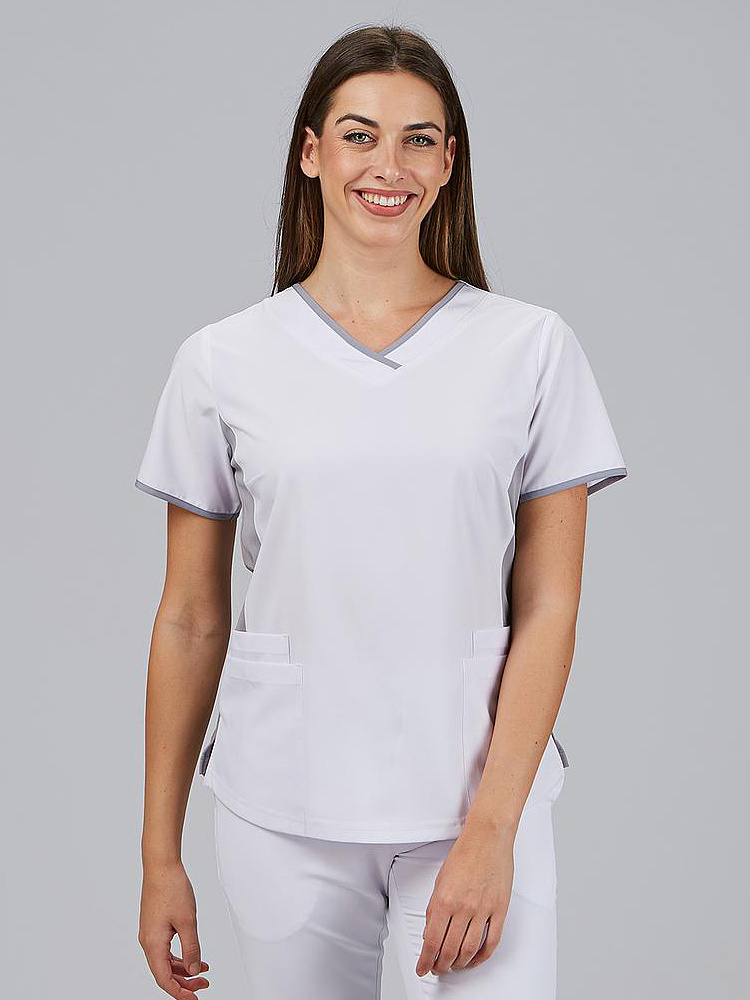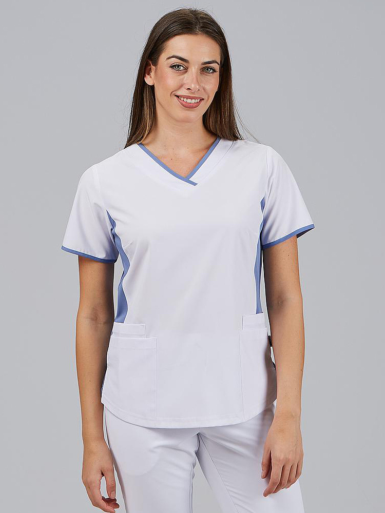 A tunica Feminina Decote em V Combinada M/C CLEO foi concebida para profissionais que precisam de desempenho e estilo durante todo o dia. Com um corte semi-ajustado M2 e um comprimento de aproximadamente 66,5 cm, esta peça combina funcionalidade e estética, ideal para ambientes como saúde, clínicas, estética ou atendimento ao cliente. Fabricada em MICROFIBRA 360 95% PES 5% EA - 170 gr/m², oferece elasticidade multidirecional, leveza e respirabilidade, além de secagem rápida e manutenção sem complicações. O sistema Air Dry nas laterais melhora a ventilação, garantindo uma sensação de frescura mesmo nos turnos mais intensos. O decote em V e as mangas curtas proporcionam uma silhueta favorecedora e funcional. As aberturas laterais permitem maior liberdade de movimentos e conforto. Incorpora 4 bolsos frontais amplos, ideais para ter à mão tudo o que é necessário durante o trabalho. Um design versátil e técnico, que se adapta ao ritmo profissional com estilo. - Decote em V - Manga curta. - Aberturas laterais - 4 bolsos na frente . - Laterais dianteiras e traseiras com Air Dry. - 66,5cm aprox. | M2 SEMI JUSTA.