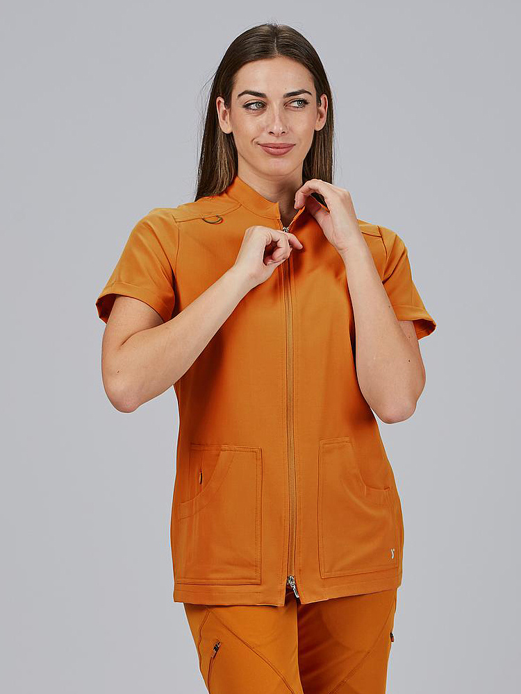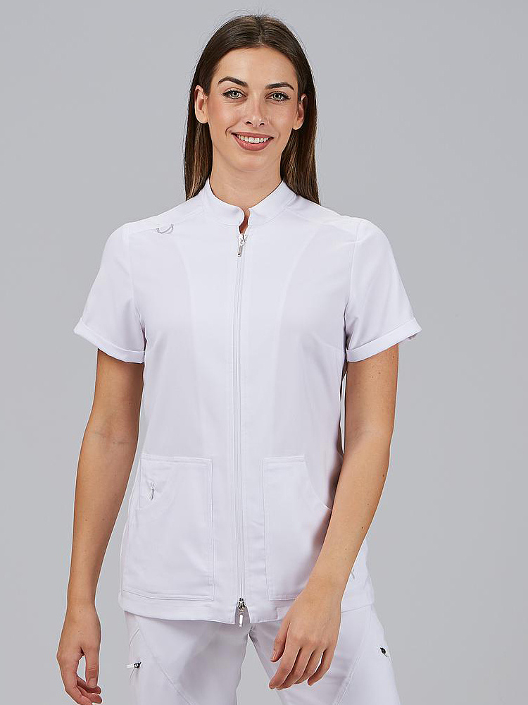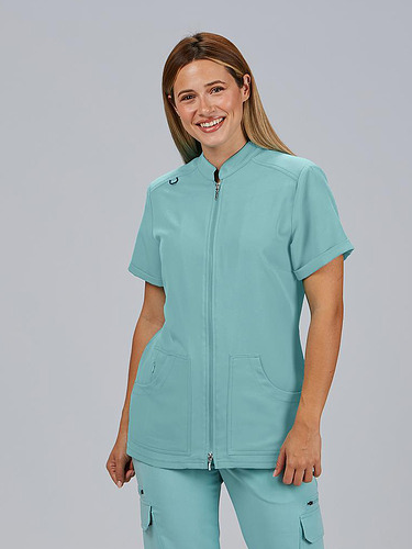 A jaqueta feminina AMY foi concebida para oferecer conforto, mobilidade e uma estética profissional impecável, ideal para setores como saúde, estética, farmácia, clínicas ou atendimento ao público. Com um corte M2 semi-ajustado e um comprimento aproximado de 68 cm, esta blusa realça a silhueta sem sacrificar o conforto. Confeccionada em tecido técnico IRIS 74% PES RECYCLED 24% RY 2% EA - 180 gr/m², é leve, elástica, respirável e de secagem rápida, perfeita para dias ativos e de uso intensivo. A sua gola mao e mangas curtas conferem-lhe um estilo moderno, fresco e profissional. O design inclui fecho central com zíper invertido e cursor duplo, o que permite maior versatilidade e facilidade de uso. Além disso, incorpora pinças no peito e nas costas para um ajuste ergonómico e 3 bolsos frontais, um deles com zíper invisível para maior segurança. - Colarinho mao. - Manga curta. - Fecho central com fecho invertido e duplo cursor. - Pinças no peito e pinças de entalhe nas costas. - 3 bolsos na frente, um com fecho invisível. - 68cm aprox. | M2 SEMI SEMI JUSTA.