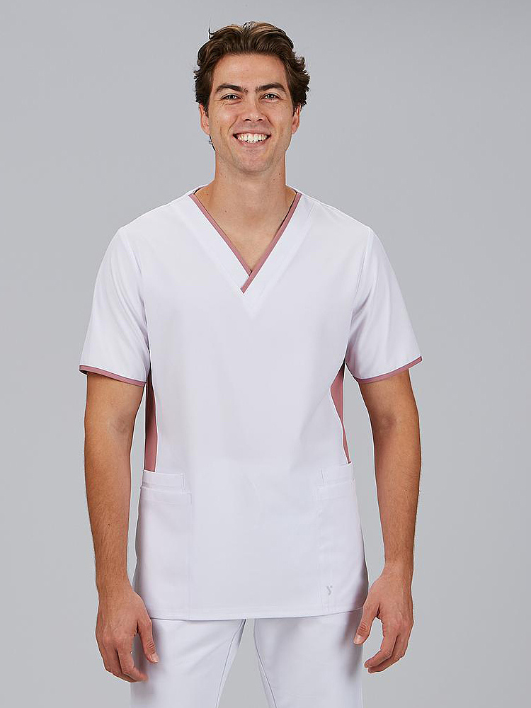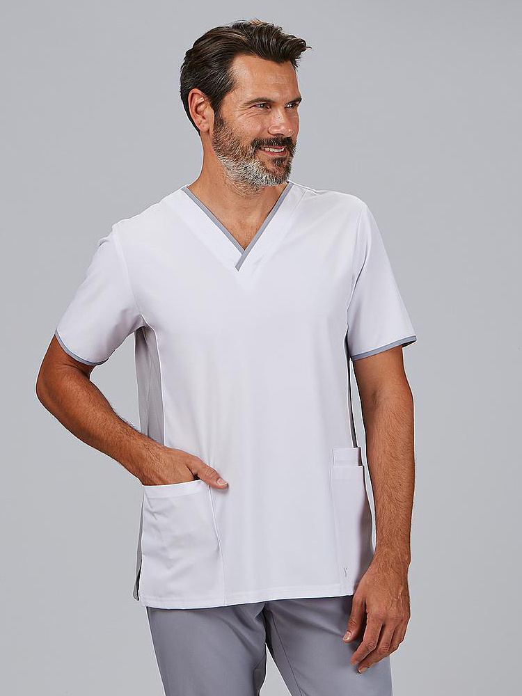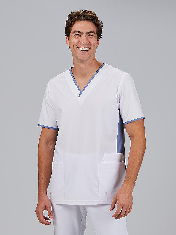 A tunica de homem decote em V Combinada M/C GAEL foi concebida para lhe oferecer liberdade de movimentos, frescura e funcionalidade durante toda a jornada de trabalho. Com um corte H2 semi-ajustado e um comprimento de aproximadamente 75,5 cm, adapta-se ao corpo com equilíbrio entre conforto e estilo, ideal para profissionais de setores como saúde, clínica, farmácia ou atendimento ao público. Confecionada em MICROFIBRA 360 95% PES 5% EA - 170 gr/m², esta blusa técnica proporciona elasticidade em 4 direções, é respirável, leve, de secagem rápida e não necessita de engomar, o que a torna uma opção prática e duradoura. As costuras com tecnologia Air Dry na frente e nas costas otimizam a ventilação, mantendo o corpo fresco em todos os momentos. O seu decote em V e as mangas curtas oferecem uma imagem moderna e profissional. As aberturas laterais permitem uma mobilidade superior e os seus 4 bolsos funcionais na frente (amplos e bem distribuídos) garantem espaço para transportar utensílios de trabalho essenciais. - Decote em V - Manga curta. - Aberturas laterais - 4 bolsos na frente . - Laterais dianteiras e traseiras com Air Dry. - 75,5cm Aprox. | H2 SEMI JUSTA.