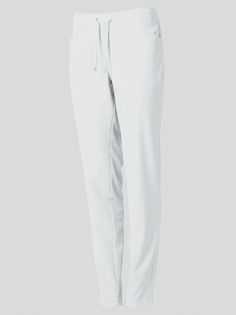 100% Liberdade de movimento. Calça com dois bolsos tipo americano tecido Microfibra. Elástico na cintura traseira. Tecido antibacteriano e repelente a líquidos. Não precisa engomar, pode ser lavado a 90 graus e a secagem é rápida e não altera a cor após várias lavagens. Tolerância a salpicos de lixívia.