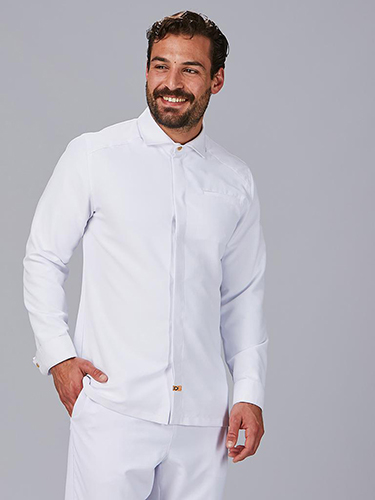 A jaleca de cozinha Tommaso é a combinação perfeita de estilo, conforto e sustentabilidade. Concebido para chefes exigentes, apresenta uma gola italiana que lhe confere um toque de sofisticação e distinção. O fecho frontal com 6 botões de pressão ocultos e um elegante botão de madeira na gola garantem um ajuste perfeito e seguro. Concebida para longos dias na cozinha, o seu jugo traseiro, as costuras laterais e o tecido air Dry na peça central melhoram a respirabilidade e o conforto térmico, garantindo frescura durante o serviço. Possui ainda um bolso na manga esquerda e outro no peito, ideal para guardar utensílios essenciais. Fabricada em microfibra reciclada 54% recicled polyester 46% polyester (145 gr/m²), esta jaleca é leve, durável e de fácil manutenção, contribuindo para a sustentabilidade sem comprometer a qualidade. Disponível em preto e branco, combina com qualquer uniforme profissional. * Gola italiana, elegância e distinção na cozinha. * Fecho de botão oculto com pormenor em madeira, ajuste seguro e sofisticado. * Costas Air Dry, máxima respirabilidade e conforto. * Bolsos funcionais no peito e nas mangas, praticidade no trabalho. * Microfibra reciclada, compromisso com o ambiente e elevada durabilidade. * Tecido leve e resistente, ideal para o uso diário. * Fácil manutenção, lavável e de secagem rápida. Versão mulher: GS930048.