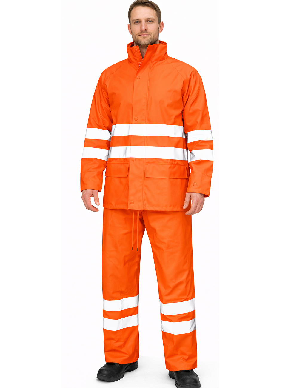 Fato de ChuvaAlta visibilidade EN ISO 20471:2013 classe 3Ajuste por fecho zipper e aba com botõesCom capuz 50% Poliuretano 50% PVC50% Poliuretano 50% PVC; 4-7 , € 44,90 c/ IVA inc. sobre € 36,50