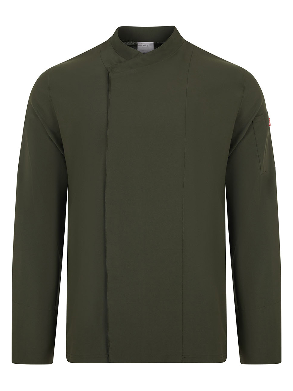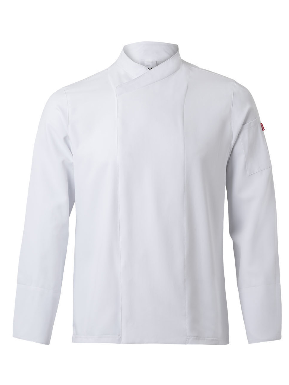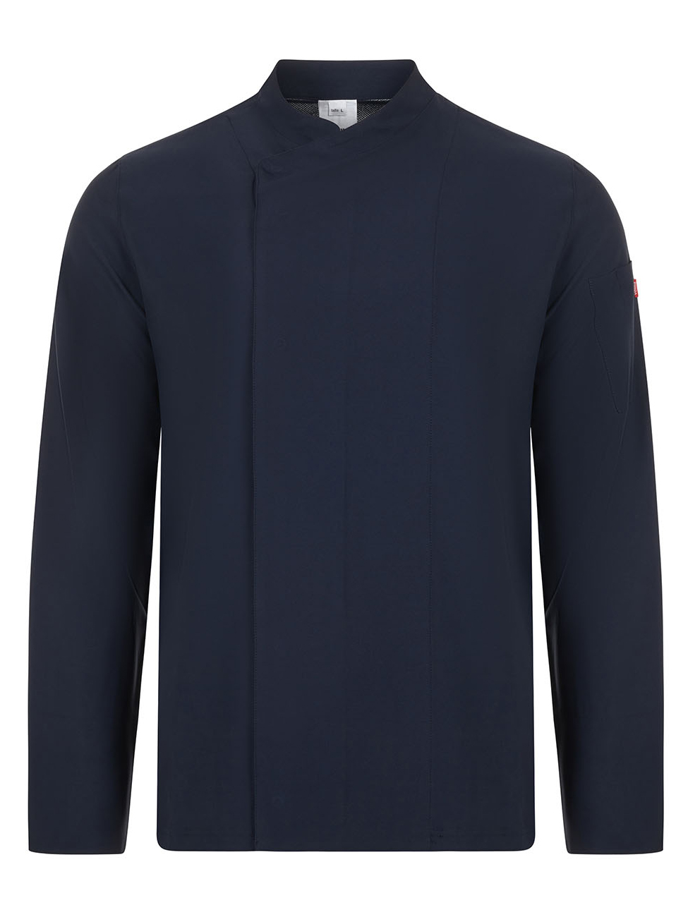 Tecido com tratamento antibacteriano e repelente de líquidos Fecho central assimétrico, com botões automáticos ocultos Gola tira Costas de peça única com tecido respirável Coolmax® Manga alfaiate com abertura arredondada nos punhos Um bolso: 1 bolso de chapa na manga esquerda com dois compartimentos