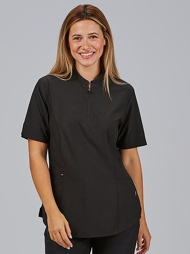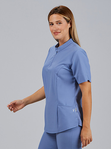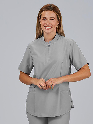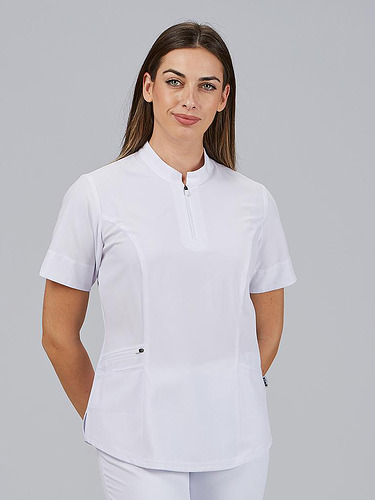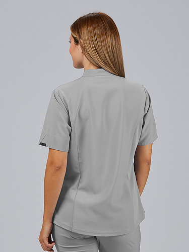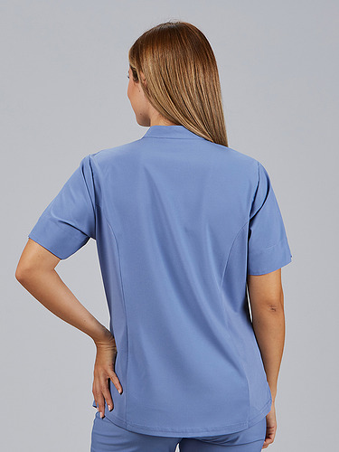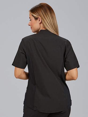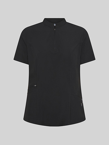 O seu design com gola mao e fecho frontal no decote confere um toque moderno e prático, facilitando o seu uso diário. Incorpora três bolsos laterais, um deles com fecho, perfeitos para transportar pequenos objetos de trabalho com segurança. A parte traseira inclui costuras laterais com tecnologia Air Dry, que melhoram a ventilação e o conforto térmico.