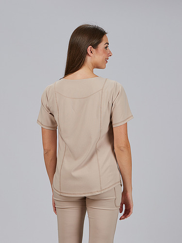 Confecionada em tecido EXTRAFIBER FINE 93% PES 7% EA - 165 gr/m², oferece um toque suave, alta transpirabilidade e elasticidade para total liberdade de movimentos. O seu corte semi-ajustado (M2), juntamente com as costuras laterais à frente e atrás, estilizam a silhueta, mantendo o conforto durante todo o dia de trabalho.