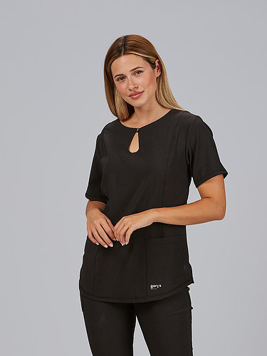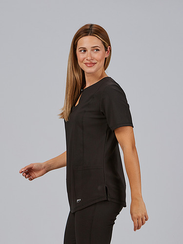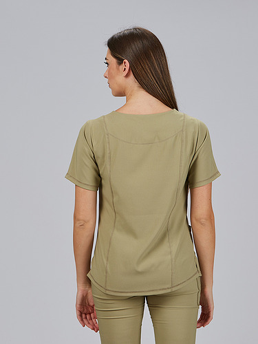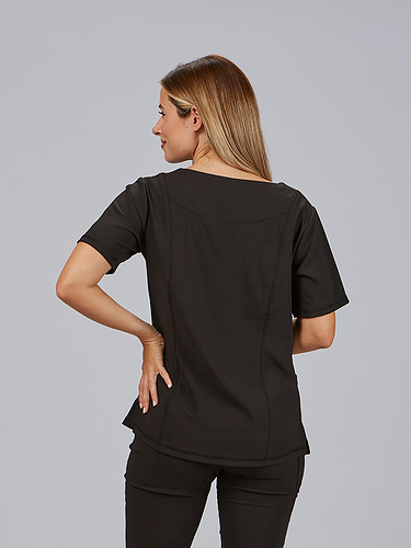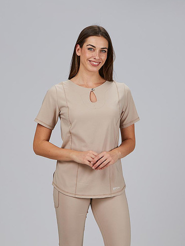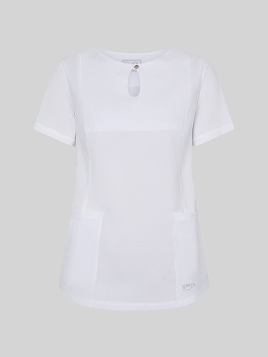 Inclui dois bolsos frontais práticos, ideais para guardar objetos pessoais ou de trabalho. A sua manga curta raglan proporciona uma grande adaptabilidade, tornando esta blusa uma opção ideal para ambientes sanitários, estéticos ou educativos.