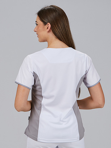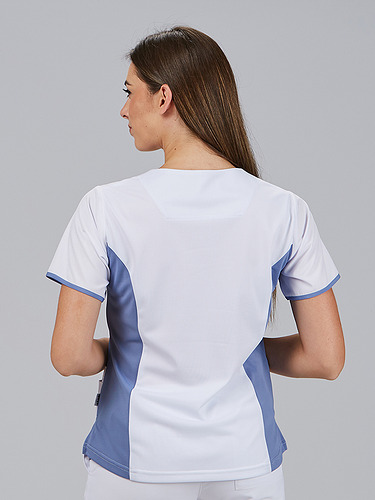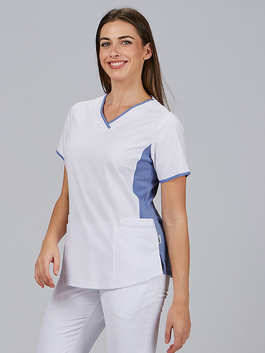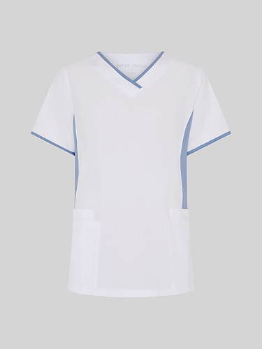 O decote em V e as mangas curtas proporcionam uma silhueta favorecedora e funcional. As aberturas laterais permitem maior liberdade de movimentos e conforto. Incorpora 4 bolsos frontais amplos, ideais para ter à mão tudo o que é necessário durante o trabalho. Um design versátil e técnico, que se adapta ao ritmo profissional com estilo.