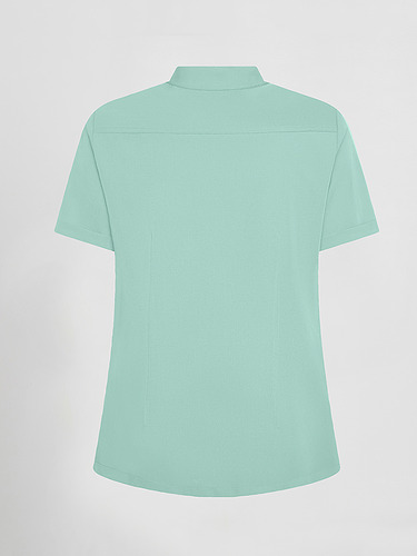 Confeccionada em tecido técnico IRIS 74% PES RECYCLED 24% RY 2% EA - 180 gr/m², é leve, elástica, respirável e de secagem rápida, perfeita para dias ativos e de uso intensivo. A sua gola mao e mangas curtas conferem-lhe um estilo moderno, fresco e profissional.