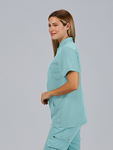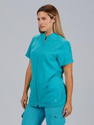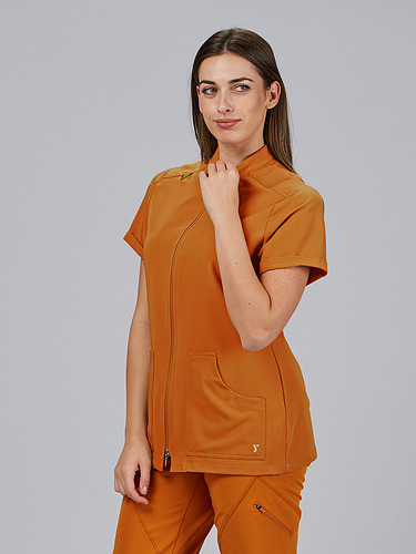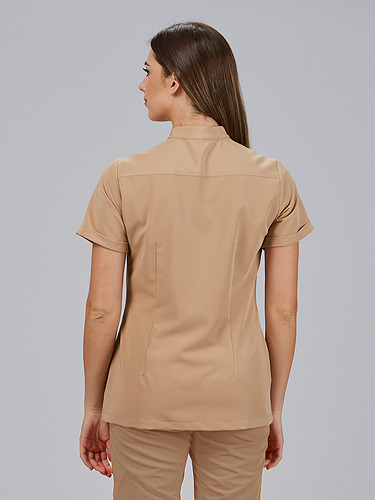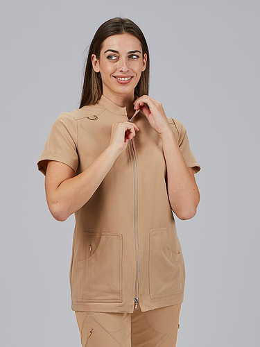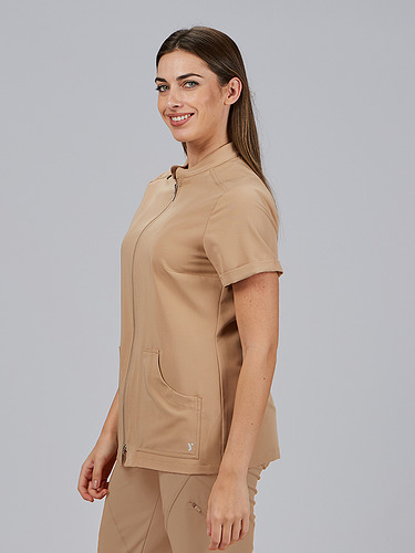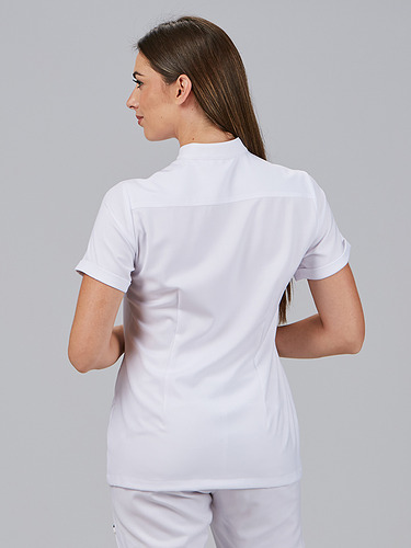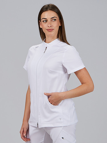 A jaqueta feminina AMY foi concebida para oferecer conforto, mobilidade e uma estética profissional impecável, ideal para setores como saúde, estética, farmácia, clínicas ou atendimento ao público. Com um corte M2 semi-ajustado e um comprimento aproximado de 68 cm, esta blusa realça a silhueta sem sacrificar o conforto.
