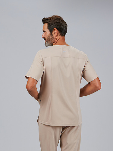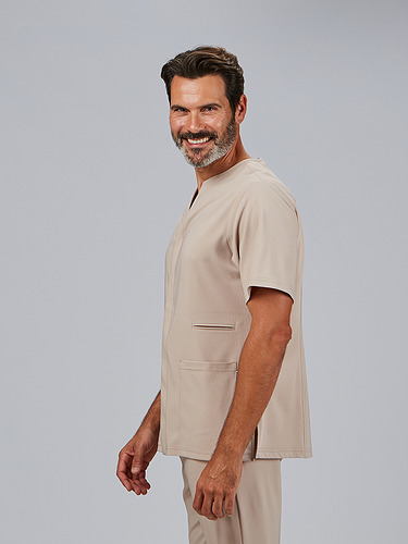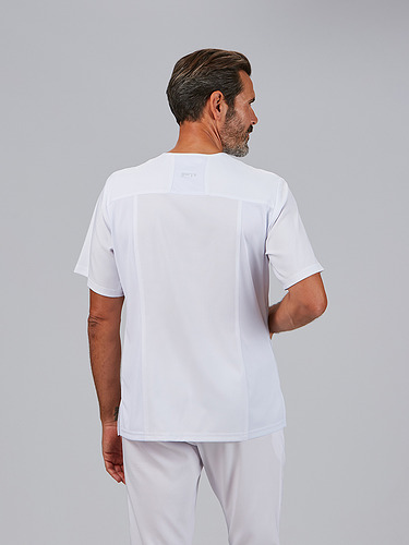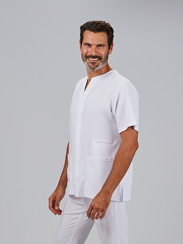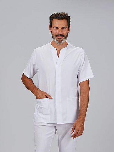 A jaqueta masculina Alonso é a escolha perfeita para profissionais que procuram uma peça confortável, prática e com um design moderno. O seu decote em V estiliza o pescoço, enquanto o seu corte semi-ajustado (H2) realça a silhueta, mantendo a liberdade de movimentos, ideal para longas jornadas no ambiente sanitário, estético ou educativo.