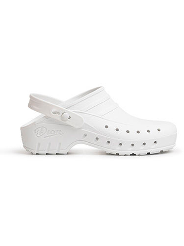 Soca em material polimérico antibacteriano SBS, anatómico, antiestático e antiderrapante. Adequado para lavagem em máquina de lavar e esterilizável a 140ºC e até 30 minutos, anatómico com tira dobrável para trás entre o calcanhar e a parte superior, perfurado nas laterais para facilitar a transpiração, limpeza e impedir a penetração direta de líquidos ou fluidos no sapato, planta com micropontos de massagem para estimular a circulação sanguínea. Acessórios: pode ser fornecido com palmilha de gel, à parte, para melhor distribuição da pressão da sola do pé, a parte inferior é composta por ventosas que, ao serem pisadas, empurram o ar retido no interior para a sola do pé, reduzindo a transpiração e aumentando o conforto.