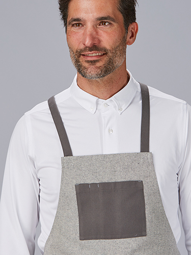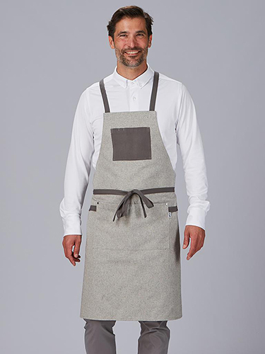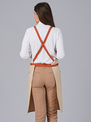 Disponível em cores elegantes e versáteis: cinzento e camel, este avental adapta-se a diferentes estilos de uniformes profissionais, proporcionando um toque sofisticado e diferenciado.