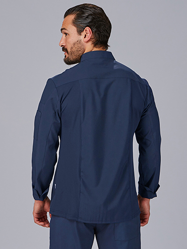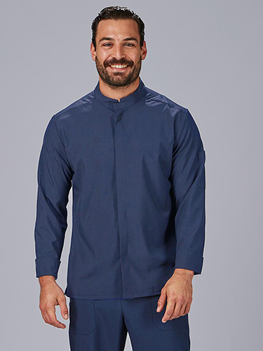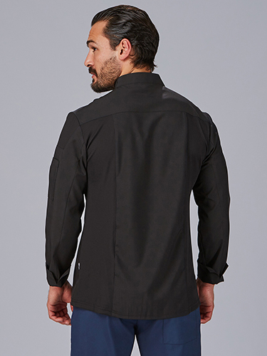 O fecho de botão de pressão oculto proporciona um acabamento limpo e sofisticado, enquanto a gola mao reforça o design elegante. As costuras nos cotovelos e uma fenda nos punhos garantem conforto e facilidade de movimentos.