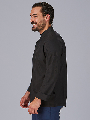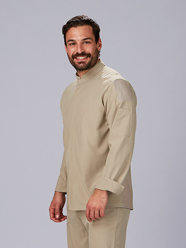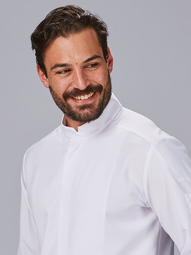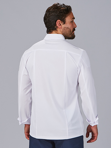 Fabricada em microfibra 360° (95% poliéster, 5% elastano - 170 gr/m²), esta jaleca é leve, respirável e de secagem rápida, ideal para o ritmo exigente da cozinha. Os painéis laterais com nervuras elásticas proporcionam um ajuste confortável e promovem a mobilidade.