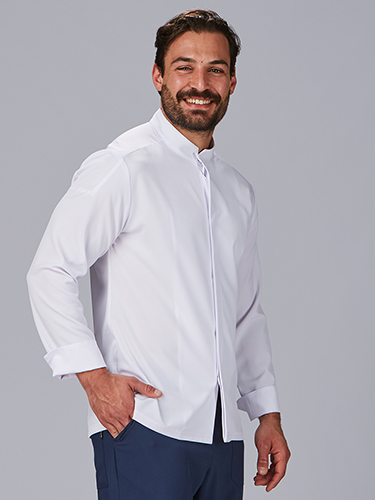 Disponível em cinco cores versáteis (branco, preto, azul-marinho, areia e verde caqui) para se adaptar a qualquer estilo de uniforme profissional.