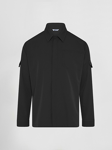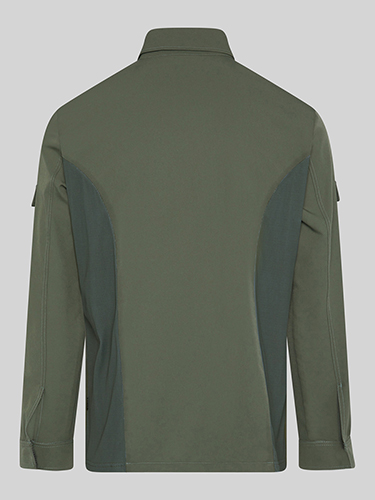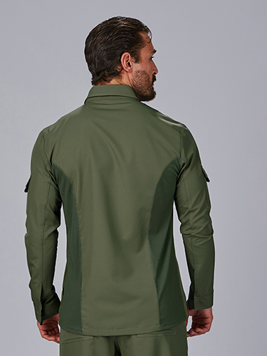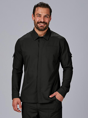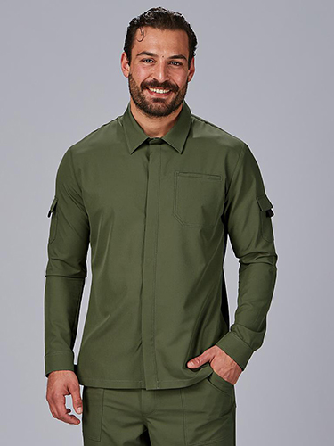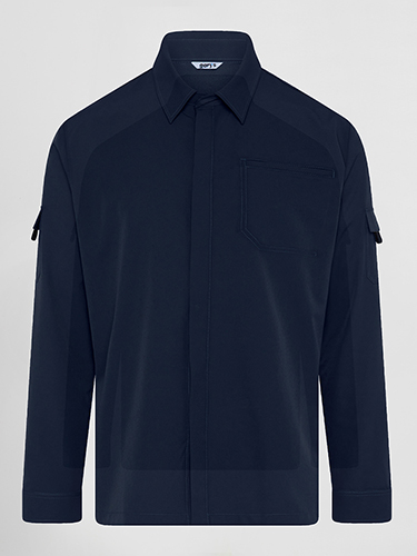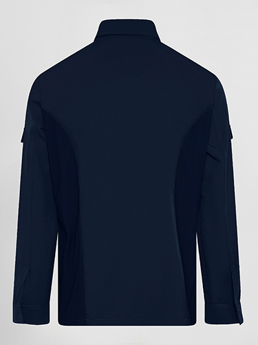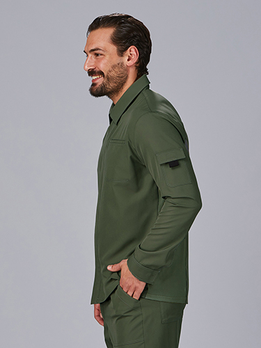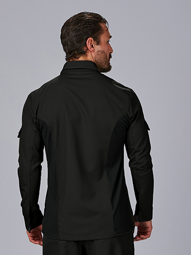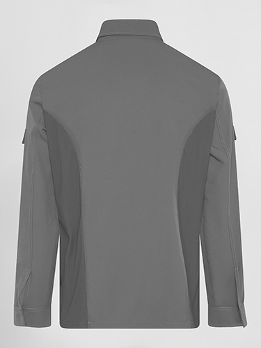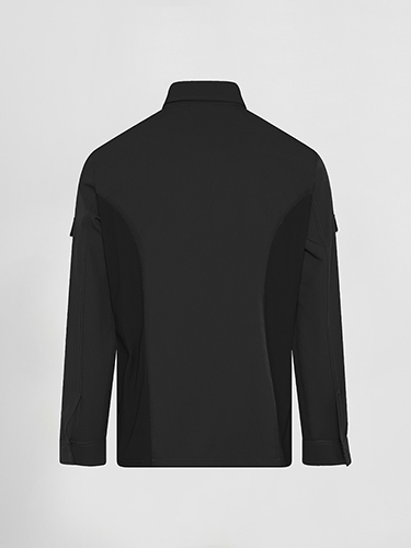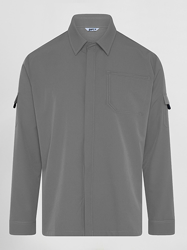 O fecho de botões de pressão oculto proporciona um acabamento limpo e profissional, enquanto o colarinho de camisa acrescenta um toque clássico e elegante. As costuras nos cotovelos aumentam a flexibilidade e a durabilidade da peça de vestuário.