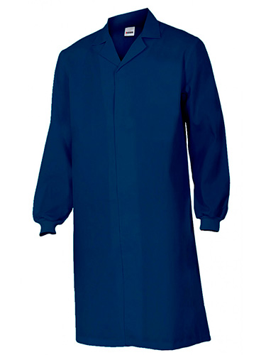 Bata unissexo de manga comprida, fecha com molas ocultas por carcela.