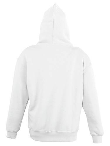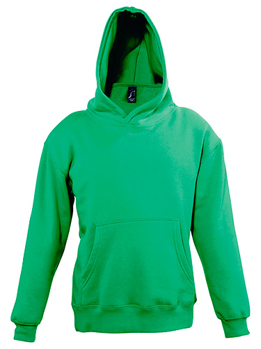 Sweat com capuz para criança, em elastano canelado. Bolso marsupial, capuz forrado sem cordões, interior cardado.