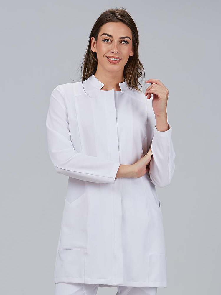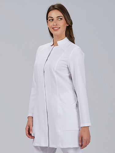 A bata feminina com botão oculto M/L LEA combina design contemporâneo, máxima funcionalidade e compromisso com a sustentabilidade. Com um corte justo (M1) e um comprimento aproximado de 85 cm, esta peça adapta-se à silhueta feminina, oferecendo liberdade de movimentos e uma imagem profissional impecável. Ideal para ambientes como saúde, estética, farmácia, clínica ou atendimento ao cliente.