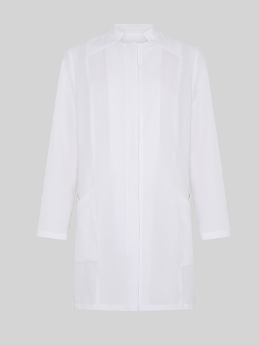 Destaca-se pelo seu colarinho mao aberto que confere um toque moderno e um fecho central com botões de pressão ocultos, que garante uma estética limpa e profissional. Além disso, incorpora 4 bolsos frontais funcionais e um canesú traseiro que melhora a queda e o ajuste da peça.