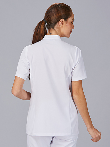 Para maior conforto, a peça inclui dardos no peito, favorecendo um ajuste ergonómico e um corte mais lisonjeiro. Com um comprimento aproximado de 65 cm, é uma opção versátil para diferentes sectores profissionais.