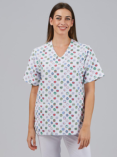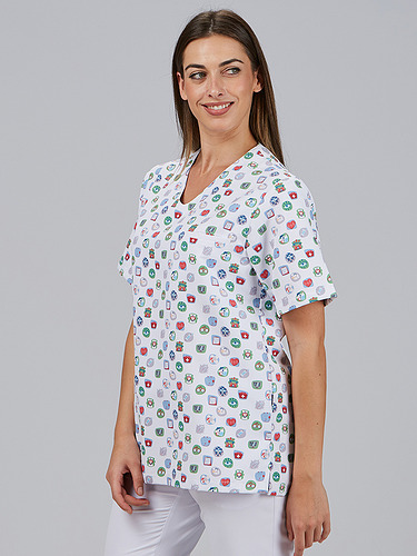 A tunica unissexo Mika é uma peça versátil, concebida para oferecer conforto e liberdade de movimentos durante todo o dia de trabalho. O seu decote em V e mangas curtas tornam-na uma opção prática e fresca para profissionais de setores como a saúde, a estética ou o bem-estar.